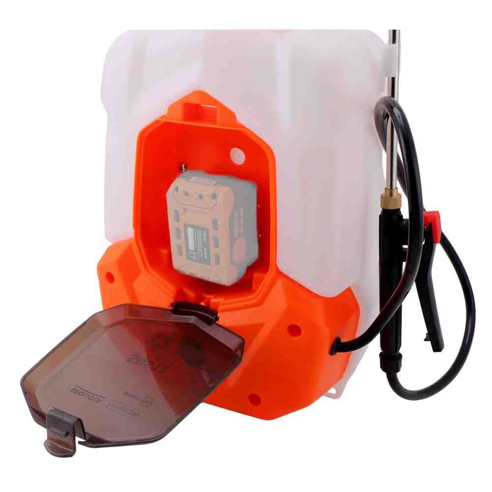 Комплектація:Обприскувач - 1 шт. Телескопічна штанга - 1 шт. Форсунки - 6 шт. Тримач штанги - 1 шт. Регулируемый ремень - 1 шт. Фільтр - 1 шт. Без акумулятора та зарядного пристрою.