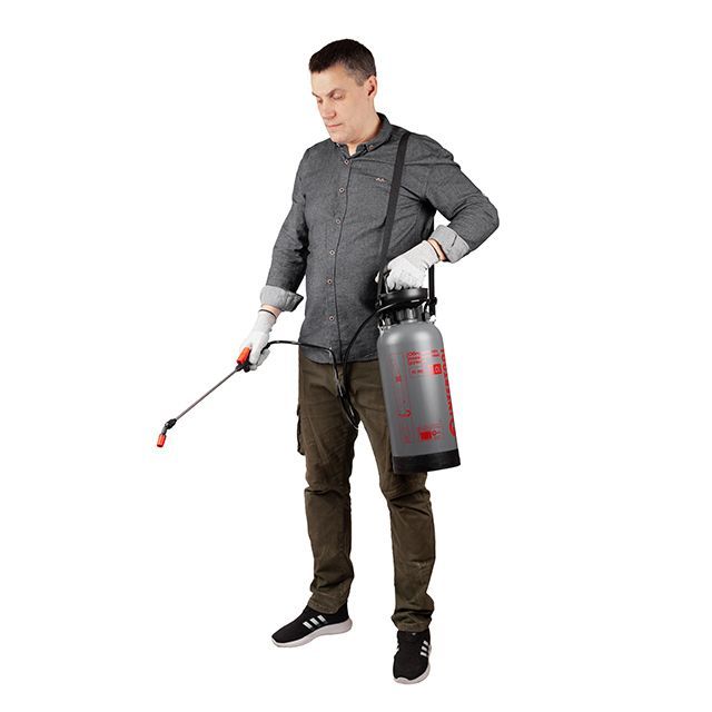 Опрыскиватель классического типа действия, работает путем накачивания воздуха в резевуар. Бачок с отметками позволяет точно залить необходимое количество раствора. Ремень с регулировкой для выбора оптимальной длины. Настройка факела распыления для удобного и эффективного орошения.