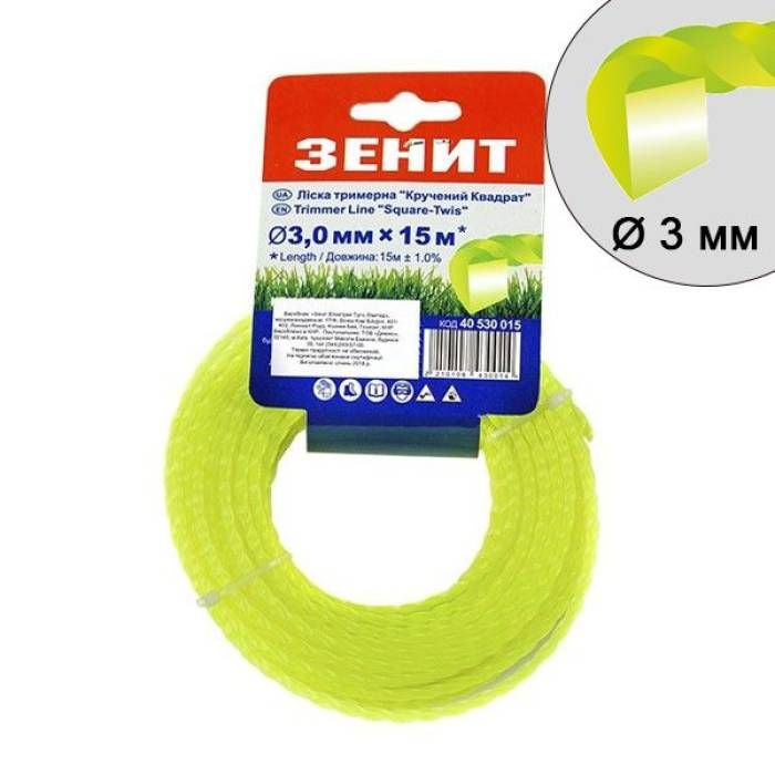 Ліска для садових тримерів "Кручений квадрат" 3.0 мм × 15 м (КРК-30-15-С)