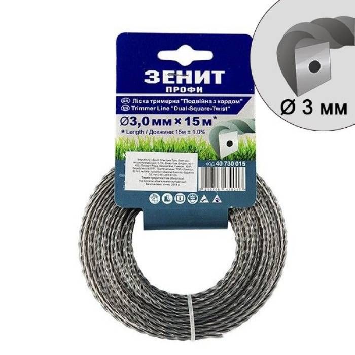 Ліска для садових тримерів "Подвійна з кордом" 3.0 мм × 15 м (КР2-30-15-КВ)