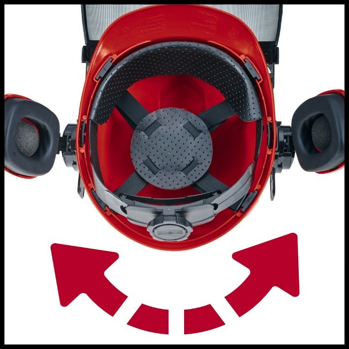 Защитный шлем Einhell для профессиональной работы – всегда в безопасности. Лесной защитный шлем Einhell разработан для эффективного и профессионального использования в любых ситуациях, когда шлем целесообразен. При работе в лесу или в лесополосах, а также при выполнении резочных работ цепной пилой ваше собственное здоровье всегда является главным приоритетом. Шлем имеет аккуратную систему для удобной регулировки длины повязки одной рукой. Гибкая защита для лица регулируется, ее можно поворачивать вверх и вниз, а также снять для безопасных рабочих шагов. Оптимальная защита слуха также была учтена при проектировании. Наушники можно поворачивать, качать вверх и вниз и регулировать на любую высоту, поэтому их можно регулировать в соответствии с индивидуальными потребностями.