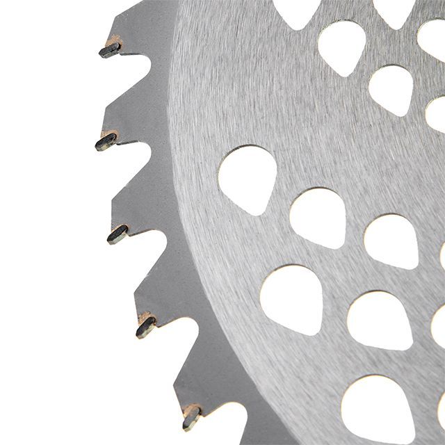 Диск оснащен 40 зубцами с твердосплавными напайками, диаметром 255 мм, и способен справится с густой травой, твердыми стеблями и небольшими ветками кустарников, бурьянов.