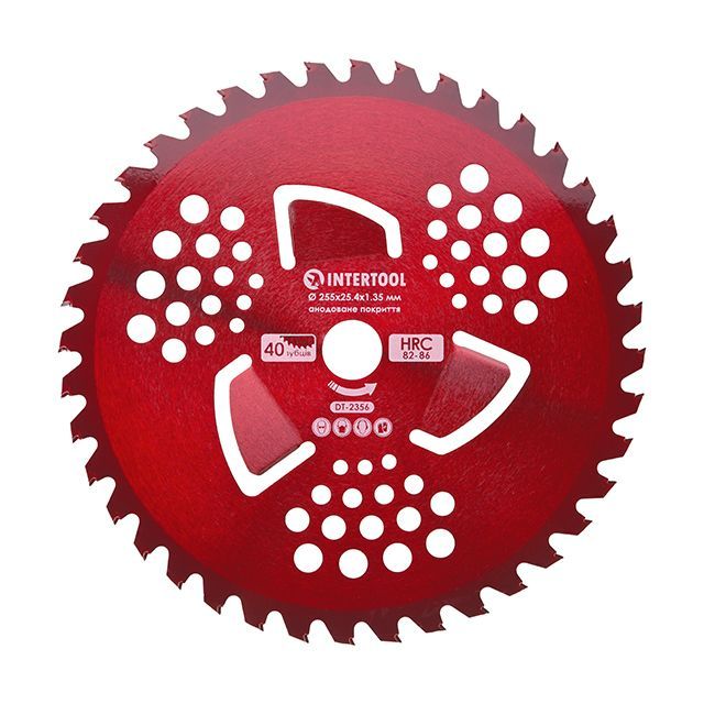 Нож для мотокосы/триммера с твердосплавными напайками ø255 мм 40T, 3 подрезных лопасти, анодированное покрытие INTERTOOL DT-2356