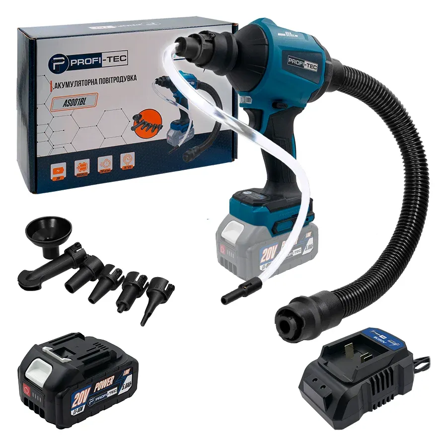 Акумуляторна повітродувка PROFI-TEC AS001BL POWERLine (1×PT2050DG (5.0 Аг), зарядний пристрій)