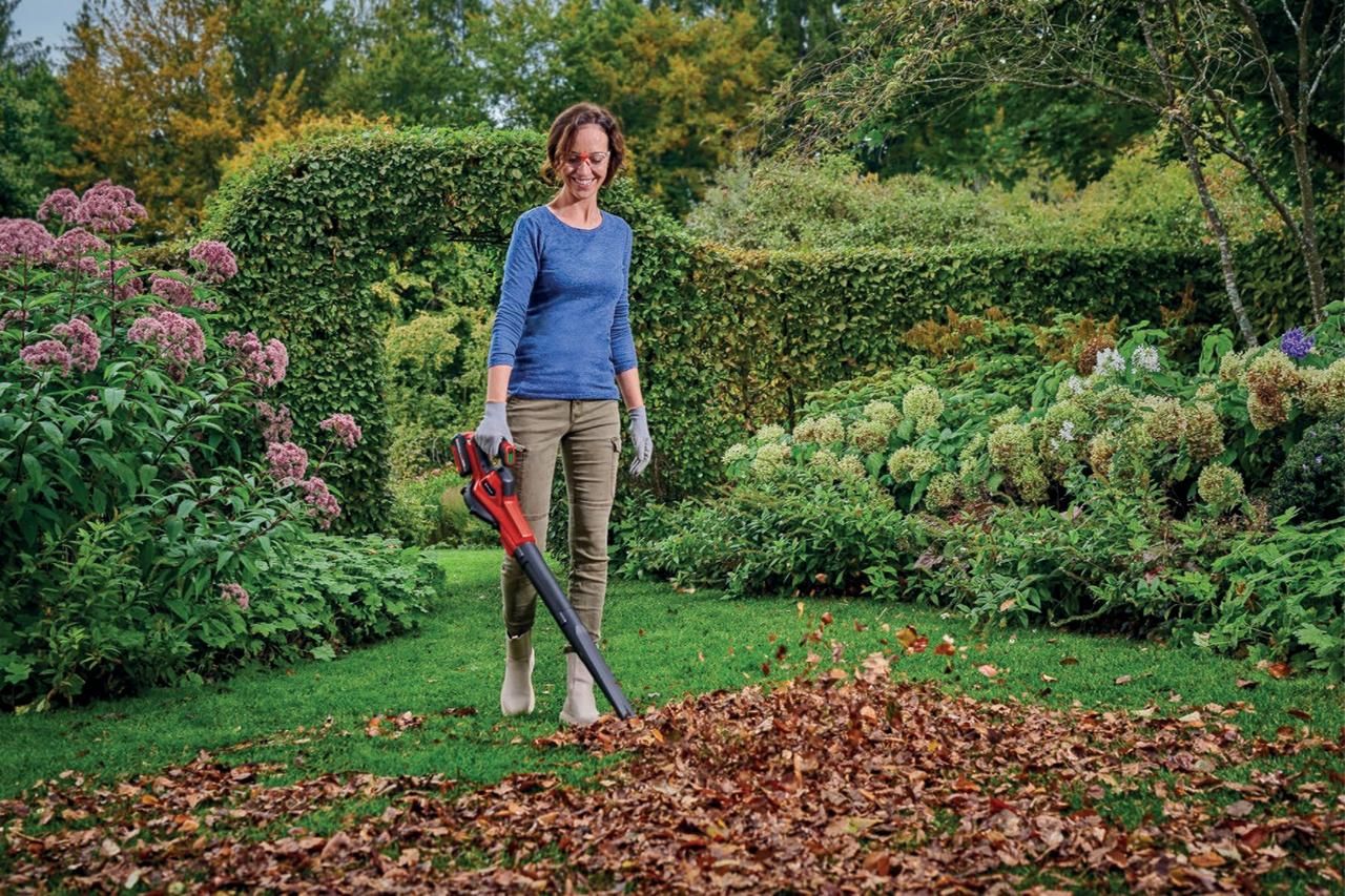 Акумуляторна універсальна повітродувка Einhell GE-UB 18/250 Li E (1x4.0 Ah) гарантує порядок у будинку та саду. Як член сімейства Power X-Change, вона потребує одного акумулятора на 18 В. Багатокомпонентна видувна труба може використовуватися для різних завдань: як повітродувка для листя з довгою видувною трубою, для майстерні - з трубою середньої довжини або як допоміжний засіб для розпалювання грилю з короткою прецизійною видувною трубою. Система електронного контролю швидкості дозволяє встановлювати необхідні налаштування. LED-дисплей показує поточну швидкість. Рукоятка Softgrip гарантує надійний хват та роботу без втоми. Кронштейн для настінного монтажу дозволяє легко зберігати інструмент. Для досягнення оптимальних результатів рекомендується використовувати акумулятор ємністю 2,5 Ач. До комплекту входить акумулятор 4.0 Ah та зарядний пристрій.