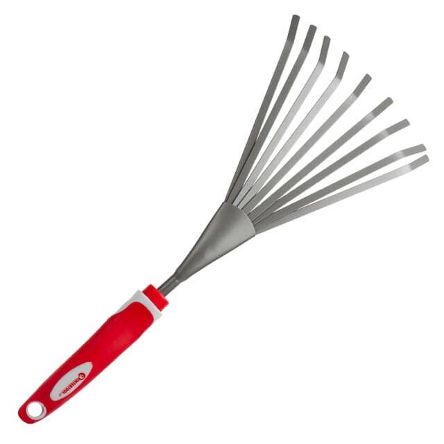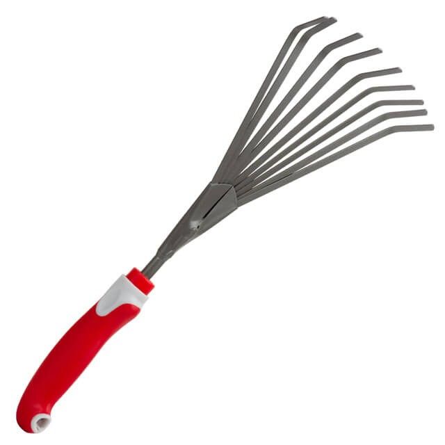 Веерные грабли позволяют убрать мусор и опавшую листву на участке под посадку и пр. Такой инструмент очень легкий, не нагружает руку и удобный для небольших клумб, теплиц, грядок.