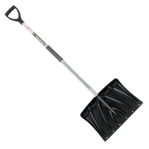 Снегоуборочная лопата изготовлена из легкого пластика с металлической ручкой для большей прочности и возможности работы под большими нагрузками.