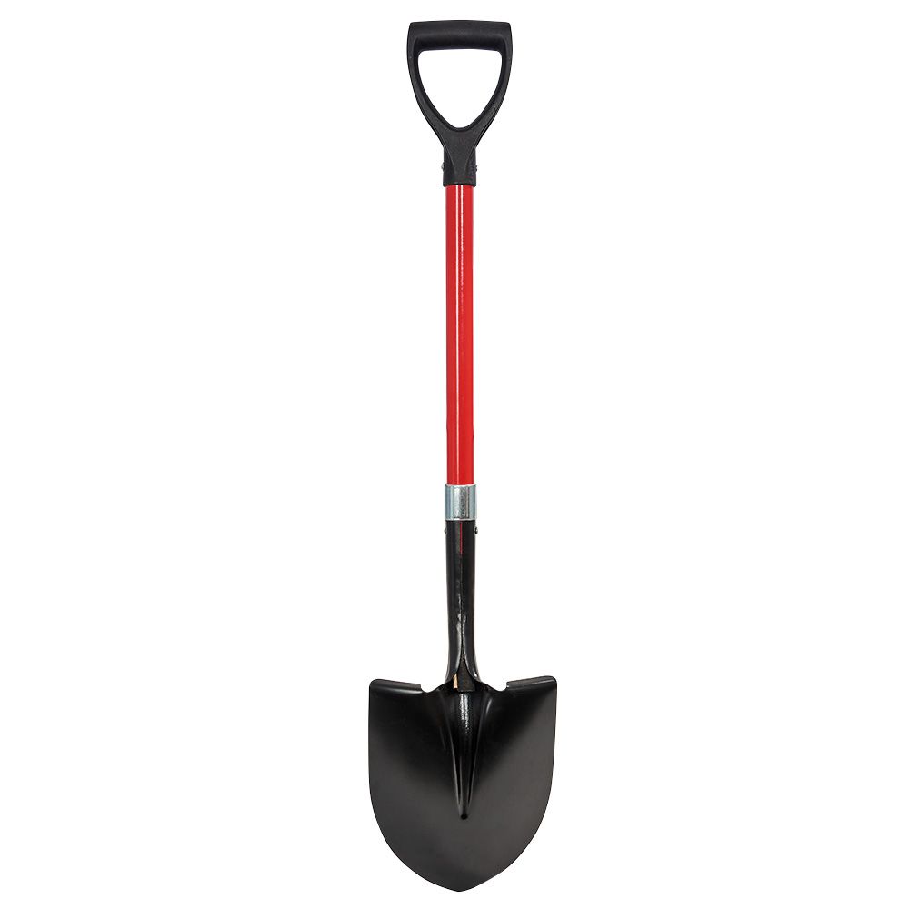 Двокомпонентне руків’я з фібергласу (скловолокна) міцне та стійке до підвищених навантажень. Держак має невелику вагу і не схильний до появи іржі, а в холодну пору року забезпечує термозахист рук. Держак фіксується до леза лопати за допомогою заклепок, що забезпечує надійне з'єднання та стійкість до вібрації. Діаметр руків’я становить 32 мм, що забезпечує зручний захват руками та контроль над лопатою.