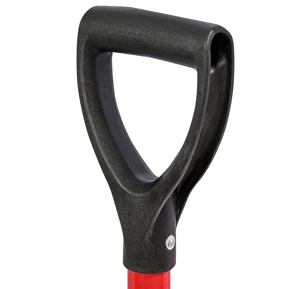Двокомпонентне руків’я з фібергласу (скловолокна) міцне та стійке до підвищених навантажень. Держак має невелику вагу і не схильний до появи іржі, а в холодну пору року забезпечує термозахист рук. Держак фіксується до леза лопати за допомогою заклепок, що забезпечує надійне з'єднання та стійкість до вібрації. Діаметр руків’я становить 32 мм, що забезпечує зручний захват руками та контроль над лопатою.