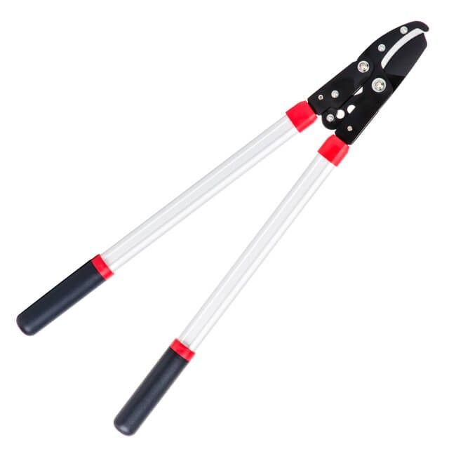 Сучкорез при своих внушительных габаритах не утомляет, изготовлен из прочного алюминия. Не гнется и не деформируется благодаря ребрам жесткости на ручках.