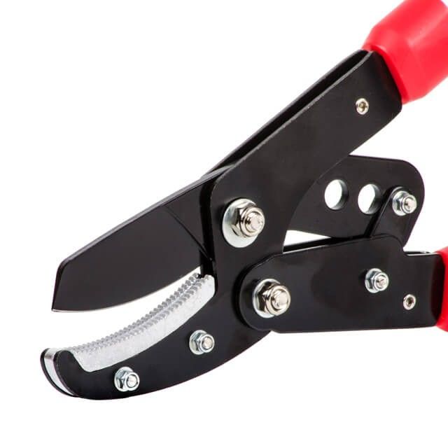 Ветки не соскальзывают с режущей плоскости, благодаря рифленой стальной поверхности нижнего упорного лезвия.