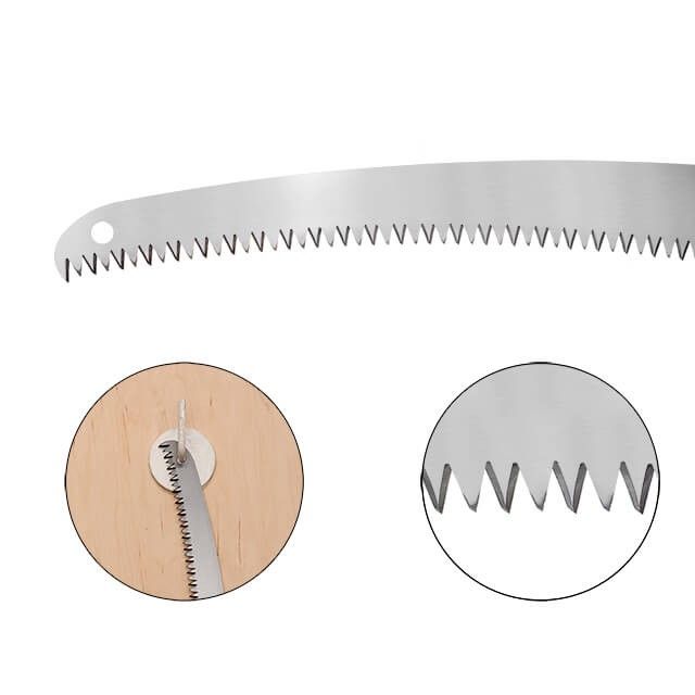 Пила острая и прочная, т.к. изготовлена из японской стали SK5. Повышенное содержание углерода в сплаве делает ее более устойчивой к нагрузкам и сохраняет остроту режущей кромки надолго.