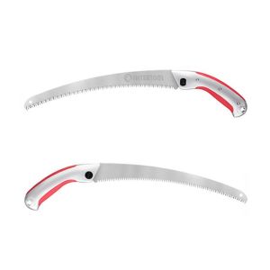 Изогнутое лезвие пилы позволяет удобно работать на уровне выше плеча. Прочная, облегченная алюминиевая ручка со вставками из термопластичной резины не позволит вам устать и обеспечивает надежное сцепление с рукой. Удобная форма рукоятки специально разработана для надежного хвата и минимальной усталости рук.