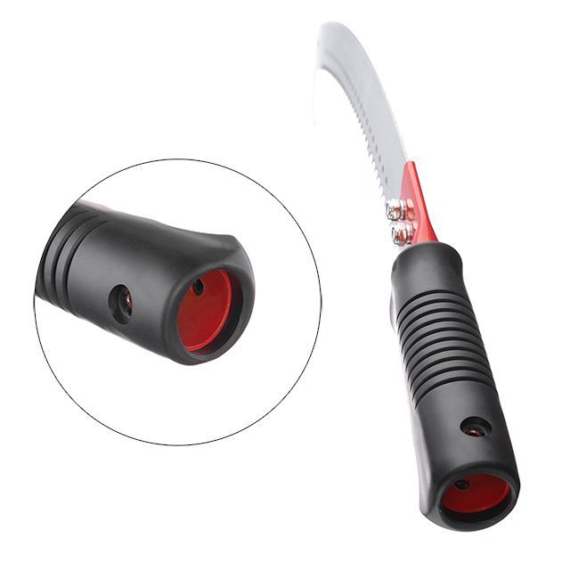 Пилой удобно работать даже одной рукой, а установив ее на штангу высотореза, вы сможете спилить ветки на высоте и в труднодоступных местах.