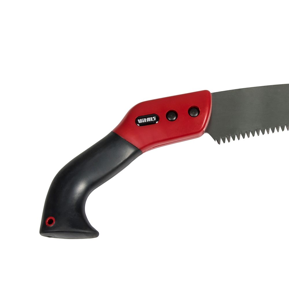 Vitals GS-300-01 — високопродуктивна ножівка для обрізання живих та сухих гілок на дачі або в прибудинковому саду. На відміну від звичайної пилки-ножівки зовсім не травмує рослини. Гострі загартовані зуби однаково ефективно й точно ріжуть суху деревину та молоді гілки. Завдяки оптимальній формі, особливій будові зубів, вазі та розмірам значно спрощує догляд за садом, дає змогу економити час роботи.