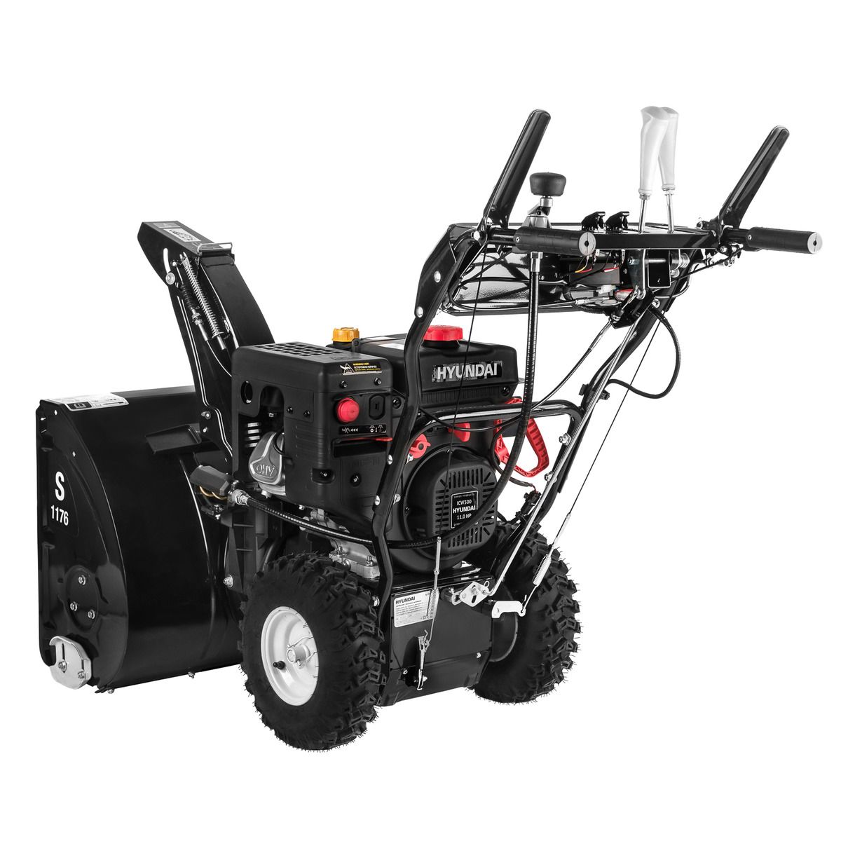 Опис Снігоприбирачі HYUNDAI оснащені потужними зимовими двигунами ICW останнього покоління розробленими HYUNDAI. Двигуни HYUNDAI мають такі особливості: Висока потужність і мала вага двигуна. Полегшений запуск до –З0℃ Підігрів карбюратора. Збільшений моторний ресурс більше 2.000 мотогодин. Знижений рівень шуму в порівнянні з аналогічними моторами. Низька витрата палива АІ-92. Особливості Система зміни напрямку викиду снігу. Жорстка рамна конструкція. Агресивні шнеки для будь-якого типу снігу. Підігрів ручок. Шини Х-ТRAC забезпечують краще зчеплення з поверхнею. Привід коліс.