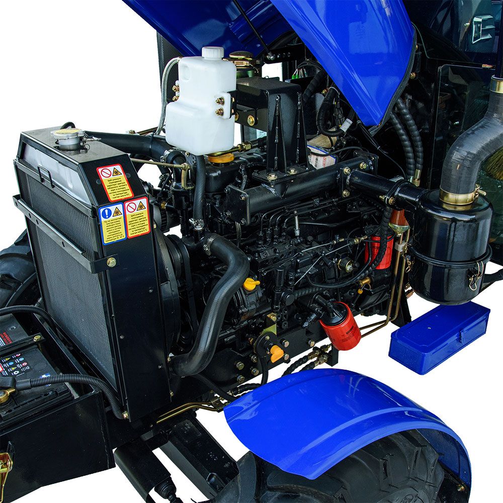 Модель має кабіну зі склоочисником, опаленням, вентилятором та магнітолою, що створює комфортні умови в будь-яку погоду. Задня триточкова навісна система з гідропідйомником вантажопідйомністю 550 кг дозволяє агрегатувати широкий перелік обладнання. ВВП із заднім розміщенням має дві швидкості: 540 / 720 об/хв та підтримує одночасне буксирування і привод навісного обладнання. Гідравлічна система забезпечує 2 виходи для підключення техніки та має окремий бак на 6,5 л. Колісна база — 1830 мм (передні 7.50-16, задні 11.2-24) забезпечує стійкість у полі.