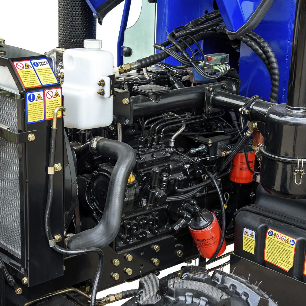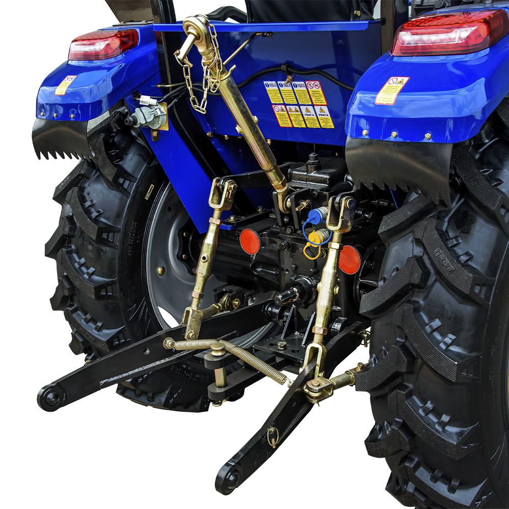 Колісна формула 4×4 забезпечує хорошу прохідність на різних ґрунтах. Задня універсальна 3-точкова навісна система з гідроциліндром закритого типу підтримує навісне обладнання, оберти ВВП — 540 і 1000 об/хв. Гідравлічна система має 2 виходи з швидкороз’ємними муфтами для підключення агрегатів.