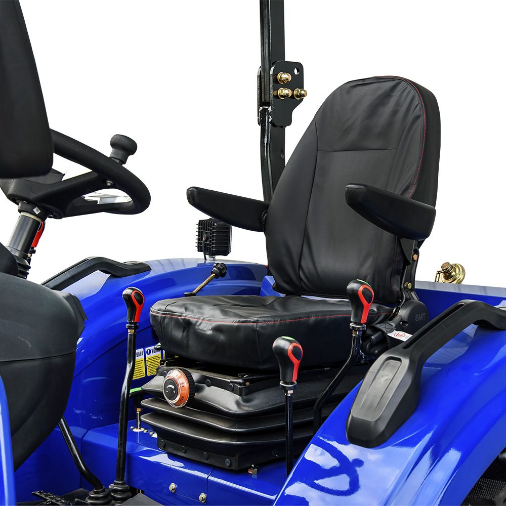 Трактор не має кабіни, але сидіння на амортизаторі з регулюванням за відстанню до керма і підлокітниками забезпечує комфорт водію. Панель приладів багатофункціональна, з цифровим покажчиком тиску. Рівна підлога додає зручності. Є електророзетка для причепа, базове освітлення, дзеркала заднього виду, звуковий сигнал і аварійна сигналізація.