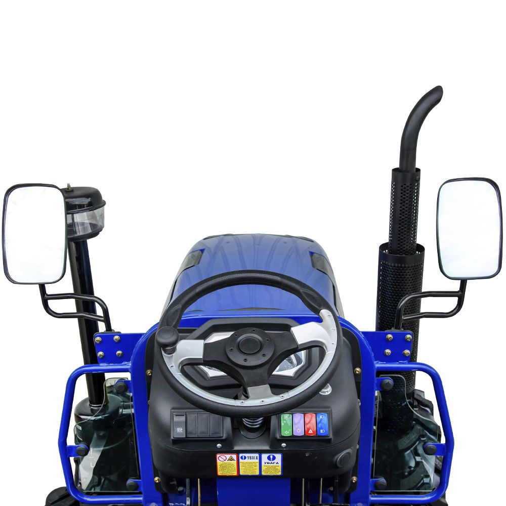 Сидіння на амортизаторі з регулюванням відстані до керма і підлокітниками. Рівна підлога оператора забезпечує комфортну роботу. Мультифункціональна електронна панель приладів із цифровим покажчиком тиску. Є електророзетка для підключення причепа. Металеві передні крила. Трактор оснащений звуковим сигналом, аварійною сигналізацією, дзеркалами заднього виду, передніми і задніми фарами, покажчиками поворотів, заднім стоп-сигналом і освітленням кабіни.