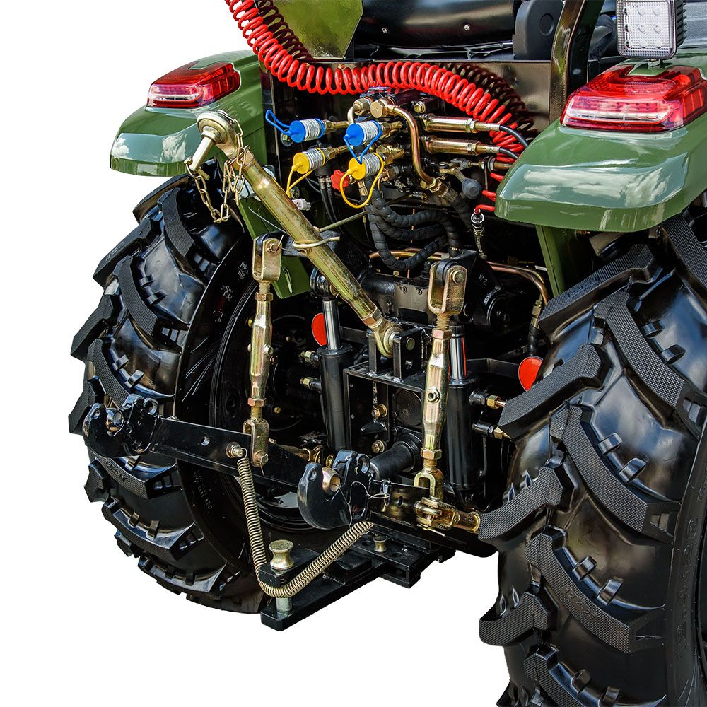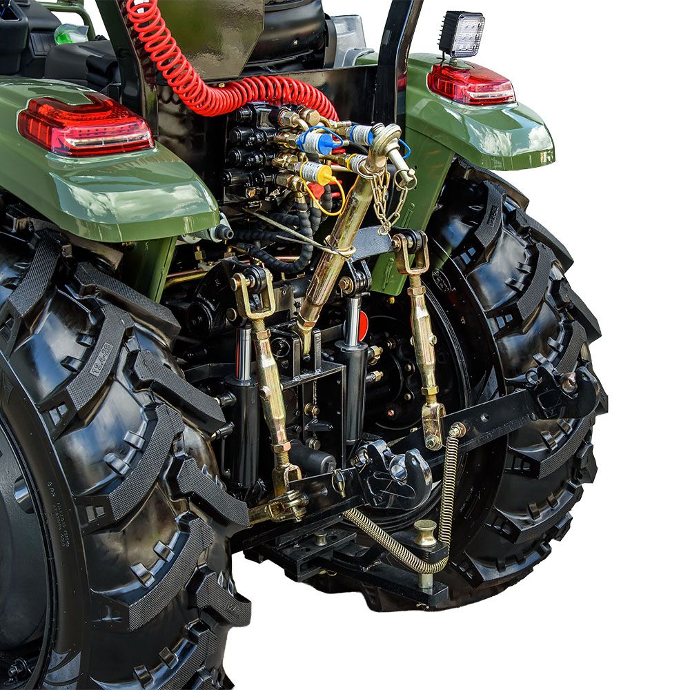 Універсальна 3-точкова навіска з двома гідроциліндрами дозволяє працювати з широким спектром сільгоспзнарядь. Вал відбору потужності на 540–1000 об/хв. Є 4 гідровиходи зі швидкорозкривними муфтами — 2 напір/злив і 2 злив — для зручного підключення обладнання.