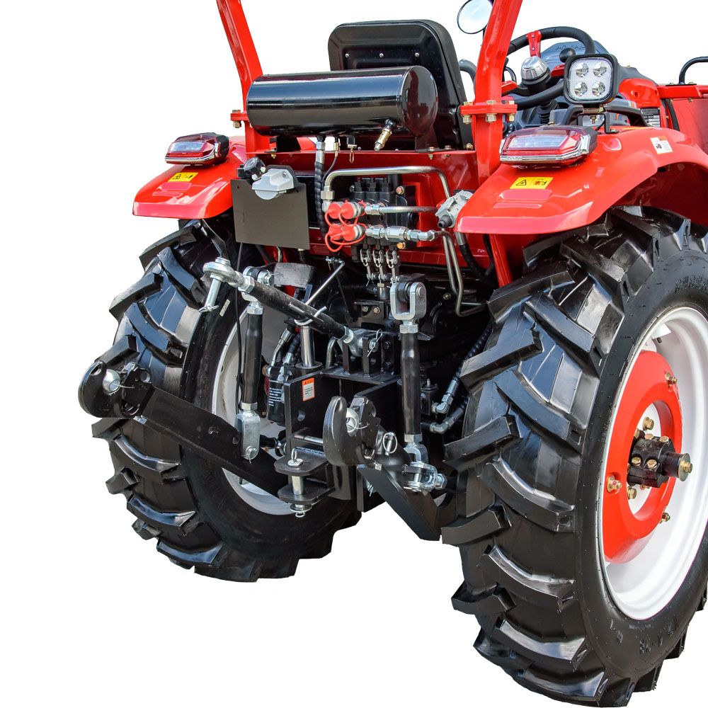 Задня 3-точкова навісна система приводиться в дію двома гідроциліндрами. Вал відбору потужності працює на двох режимах — 540 та 1000 об/хв. Є чотири гідровиходи (2 напір/злив, 2 злив) зі швидкорозкривними муфтами для під’єднання навісного обладнання. Знімна маятникова цапфа забезпечує просте буксирування.