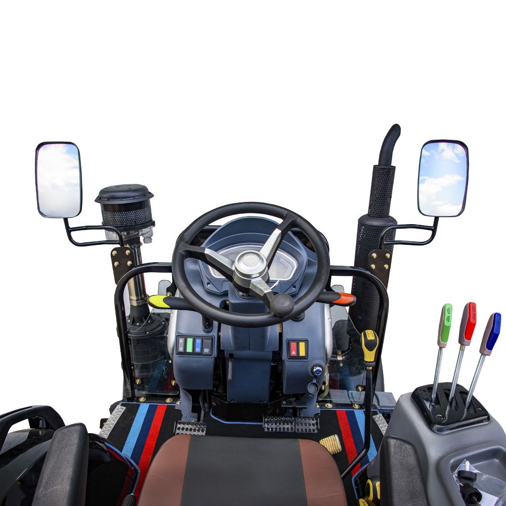 Попри відсутність кабіни, трактор має зручне сидіння з амортизатором та регулюванням, рівну підлогу, цифрову панель приладів, а також електророзетку для причепа, освітлення, дзеркала, сигналізацію та фари. Магнітола, кондиціонер та обігрів не передбачений, що робить цю модель простою та недорогою в обслуговуванні.