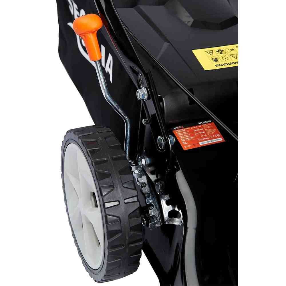 Двигун SQ99-4T; Потужність 2.00 кВт; Ширина косіння 40 см; Висота косіння 25-75 мм; Травозбірник 45 л