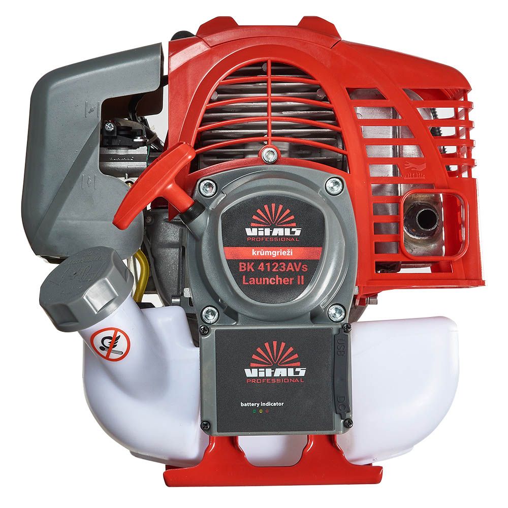 Двотактний двигун мотокоси Vitals Professional BK 4123avs Launcher II виготовлений з високоякісного комплектування. Розвиває до 10000 обертів за хвилину і при порівняно невеликому об’ємі (41,5 см3) має досить пристойну потужність — 1700 Вт (2,3 к. с.) Однаково добре приводить в дію міцну (товщиною 2,4 мм) ліску, 3-зубчастий ніж, 40-зубчастий сталевий диск.