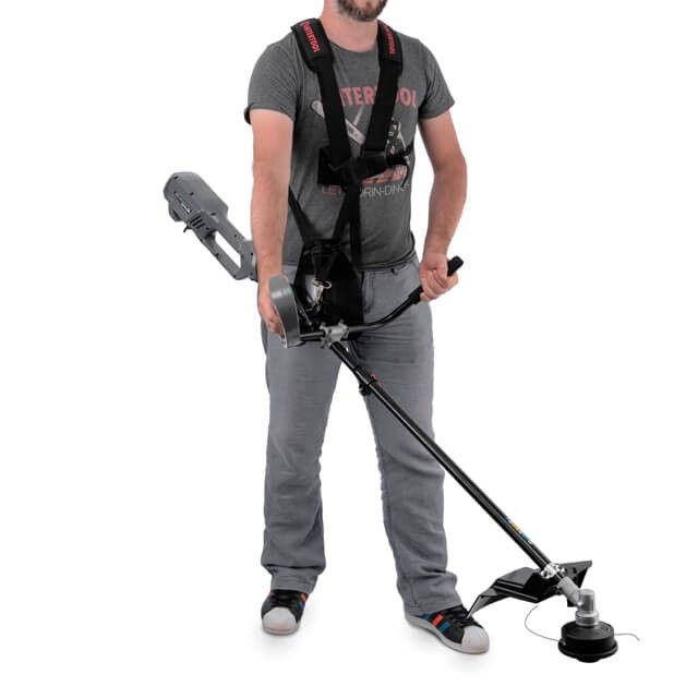 Двигатель расположен в верхней части штанги, поэтому пыль и влага не попадает внутрь, это позволяет работать с сухой и мокрой травой в любое время суток. Штанга в триммере разборная, поэтому во время транспортировки и хранения инструмент не займет много места.