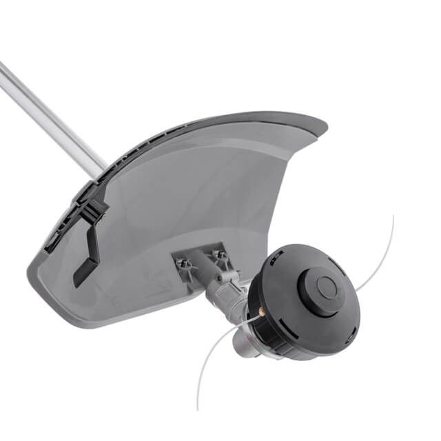 Защитный кожух изготовлен из ударопрочного пластика, он закрывает режущее оборудование, таким образом ограждает пользователя от выброса травы и прочих предметов.