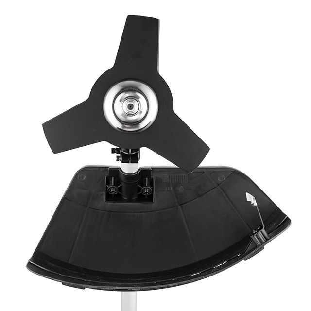 Двигатель расположен в нижней части штанги с прямым приводом на оснастку. Комплектуется катушкой с леской 2 мм и трех зубчатым ножом, при этом в эксплуатации можно использовать леску любой формы для вашего удобства. Ширина кошения – 250 мм (для ножа) и 350 мм (для лески). Благодаря возможности установки ножа, триммер справляется с порослями кустарников.