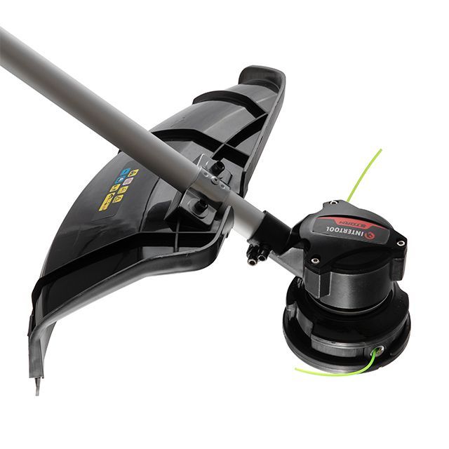Триммер аккумуляторный с бесщеточным двигателем 40 В (2х20 В), 6000 об/мин, диаметр вращения диска/лески 255/350 мм, катушка + 3-х зуб.нож, без ЗУ АКБ INTERTOOL WT-9213
