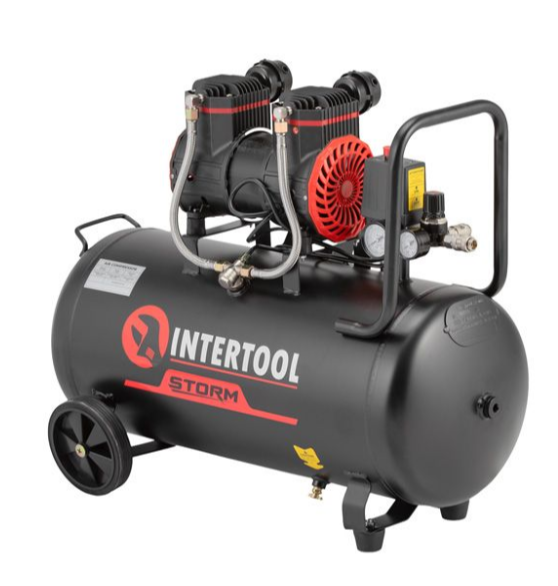 Компрессор 50 л, 1.5 кВт, 220 В, 8 атм, 250 л/мин, 2800 об/мин, безмасляный, 2 цилиндра INTERTOOL PT-0035