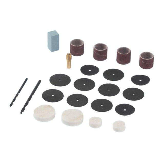В комплекте с данной шлифовальной машиной поставляется 40 сменных расходных насадок для выполнения разнообразных задач.