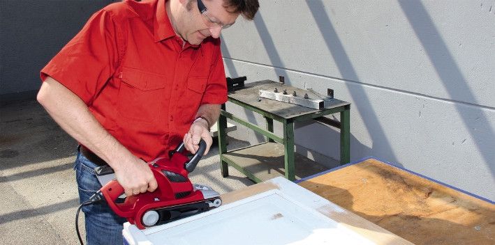 Электронный контроль скорости Легкая и быстрая смена шлифовальной ленты Точное положение ленты с регулировкой точности Регулируемая дополнительная рукоятка для оптимальной работы Фильтрующая коробка собирает пыль от шлифования Откидная передняя крышка Мягкие накладки на ручке Кабельный зажим для крепления кабеля В комплекте 1 шлифовальная лента (P80) Ленточная шлифмашина Einhell TE-BS 8540 E представляет собой высококачественный, мощный инструмент, который является идеальным выбором для шлифования больших поверхностей из дерева, пластика или металла. Электронный контроль скорости позволяет отрегулировать мощность для работы с разными материалами. Точное положение ленты может быть оптимально установлено благодаря точной регулировке, в то время как шлифовальная лента может изменяться только поворотом запястья и без каких-либо инструментов. Мягкие накладки на ручке и регулируемая дополнительная рукоятка TE-BS 8540 E обеспечивают отличную эргономику и высокое удобство пользователя для комфортной и безопасной работы. Передняя крышка может быть перевернута вверх для того, чтобы достать шлифмашину в труднодоступные места. В перевернутом состоянии вниз она выступает в качестве переднего конца распорки, и в сочетании с регулируемой дополнительной рукояткой обеспечивает максимальную гибкость инструмента. Для работы с низким уровнем пыли ленточная шлифмашина имеет адаптер пылеудаления и фильтрующую пластиковую емкость для сбора пыли. Кабельный зажим для крепления кабеля позволяет сохранять TE-BS 8540 E аккуратно и безопасно. Одна шлифовальная лента входит в комплект поставки, так что вы можете сразу приступить к работе.