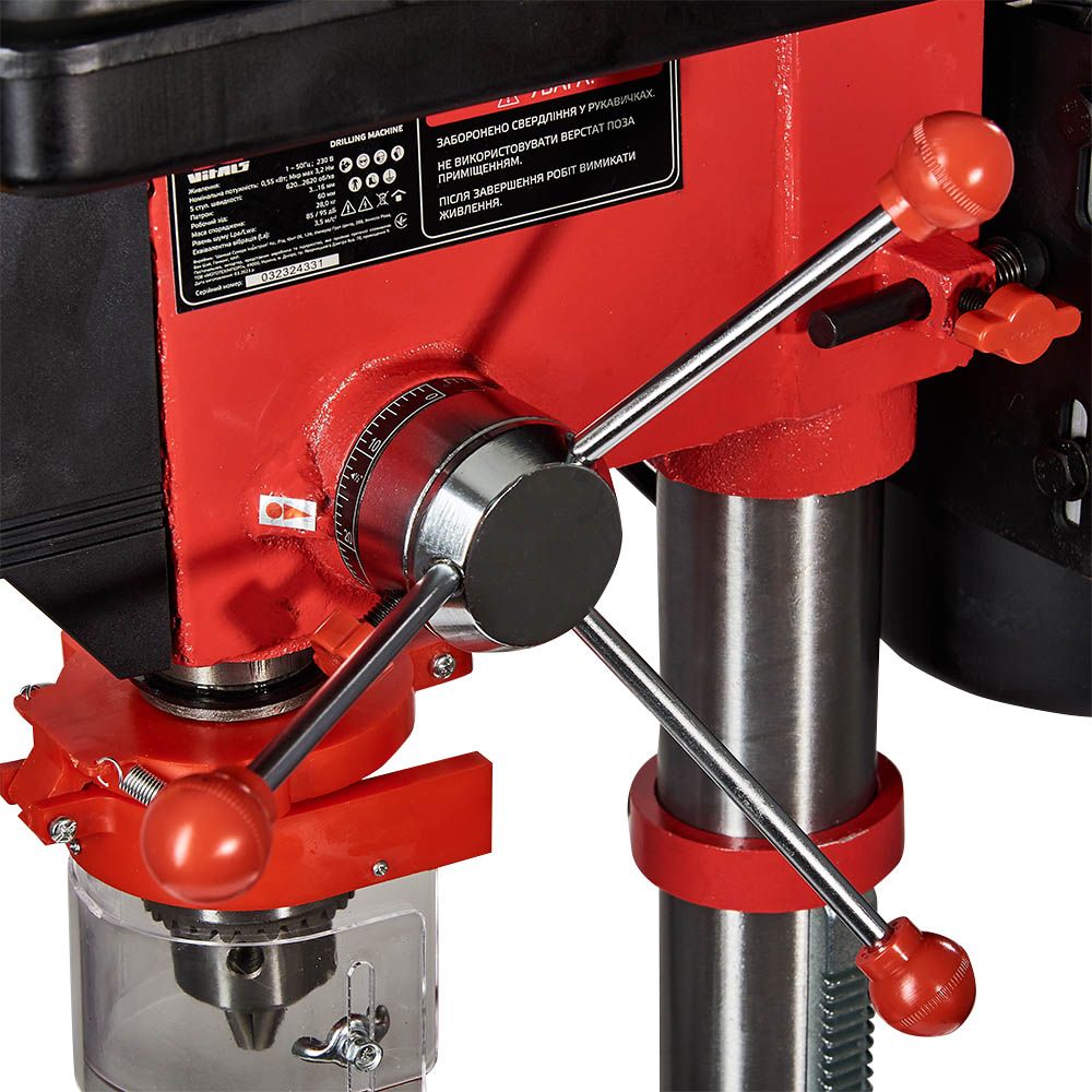 Однією з особливостей верстата Vitals GU 1655SM є захист свердлильного патрона. Це запобігає можливим травмам оператора в разі випадкового контакту з інструментом, що обертається, і гарантує безпеку роботи.