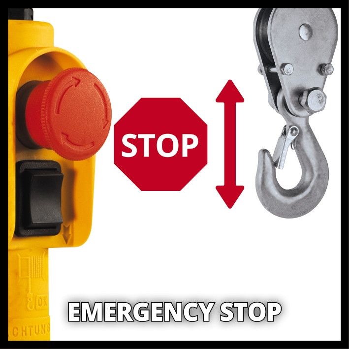 Електричний тельфер Einhell TC-EH 600 - це потужний пристрій, при створенні якого особлива увага приділялася безпеки його роботи. Для додаткової безпеки під час роботи конструкцією передбачені аварійний вимикач у оператора тельфера, запобіжник на вантажному гаку, автоматичний обмежувач маси вантажу, що піднімається, автоматичне гальмо, що фіксує вантаж на будь-якому етапі підйому. Оснащення двигуна термостатичним вимикачем забезпечує його тривалий термін служби. Завдяки двом сталевим скоб тельфер легко монтується.