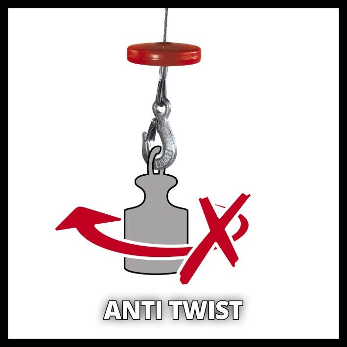 Электрический тельфер Einhell TC-EH 250 позволяет безопасно поднимать груз в любом месте: в доме, саду и мастерской, просто нажав на кнопку. Для дополнительной безопасности во время работы предусмотрены аварийный выключатель у опоры тельфера, предохранитель на грузовом крюке, автоматический ограничитель массы поднимаемого груза, автоматический тормоз, который фиксирует груз на любом этапе подъема. Благодаря тросу длиной 12 метров и диаметром 3,2 мм с защитой от перекручивания груз массой 250 кг может быть поднят на высоту 5,7 метров с помощью реверсивного шкива. Без использования реверсивного шкива груз весом 125 кг может быть поднят на высоту 11,7 метра.