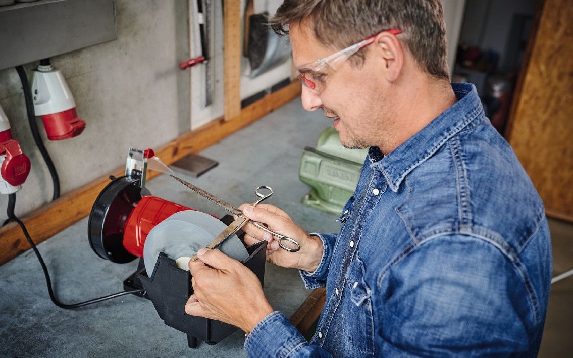 Можно использовать для сухой и влажной заточки/шлифовки. 4 резиновые ножки для устойчивости и низкой вибрации Прочный металлический корпус Регулируемые экраны защиты от искр для безопасной работы Регулируемый рабочий упор Нержавеющий бак для воды Отбалансированный вал и большие прецизионные подшипники для точных работ Поставляется с грубым диском для заточки/шлифовки Поставляется с мягким диском для влажной заточки. Закрытые по бокам защитные кожухи для безопасной работы Точильный станок Einhell TC-WD 200/150 для влажной и сухой шлифовки является незаменимым помощником для всех работ по влажной и сухой шлифовке, например, заточке ножей и лезвий. Этот шлифовальный станок оснащен одним грубым шлифовальным кругом и одним мелкозернистым медленно вращающимся шлифовальным кругом, каждый из которых установлен на шарикоподшипниковый вал. TC-WD 200/150 изготовлен в крепком, компактном корпусе из металла для длительного срока службы и надежно закреплен на четырех нескользящих, вибропоглощающих ножках. Регулируемый рабочий упор легко регулируется для грубого шлифовального круга. Для влажной шлифовки существует коррозионностойкий нержавеющий резервуар для воды. Для обеспечения безопасности во время шлифования предусмотрен регулируемый экран защиты от искр и закрытые по бокам защитные кожухи.