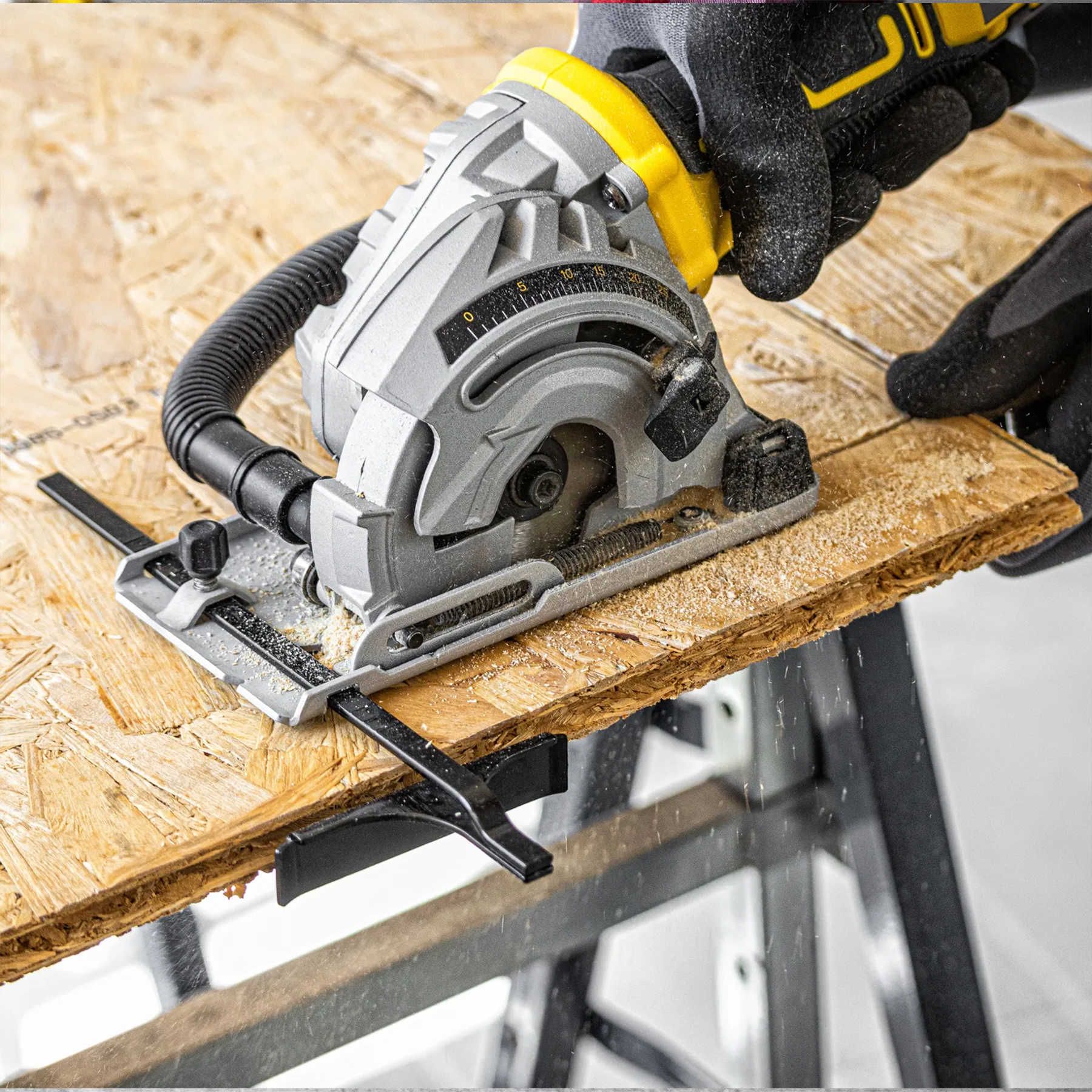 Не зважаючи на те, що це компактний інструмент, для ідеального поздовжнього паралельного різу міні-пилка оснащена паралельною напрямною планкою, що входить у комплект. Гладка алюмінієва підошва з двохстороннім прорізом-маркером розпилу дозволяє плавно і точно направляти пилку вздовж лінії розпилу. Низький рівень вібрації та збалансований центр ваги також сприяють точності та зручності роботи.