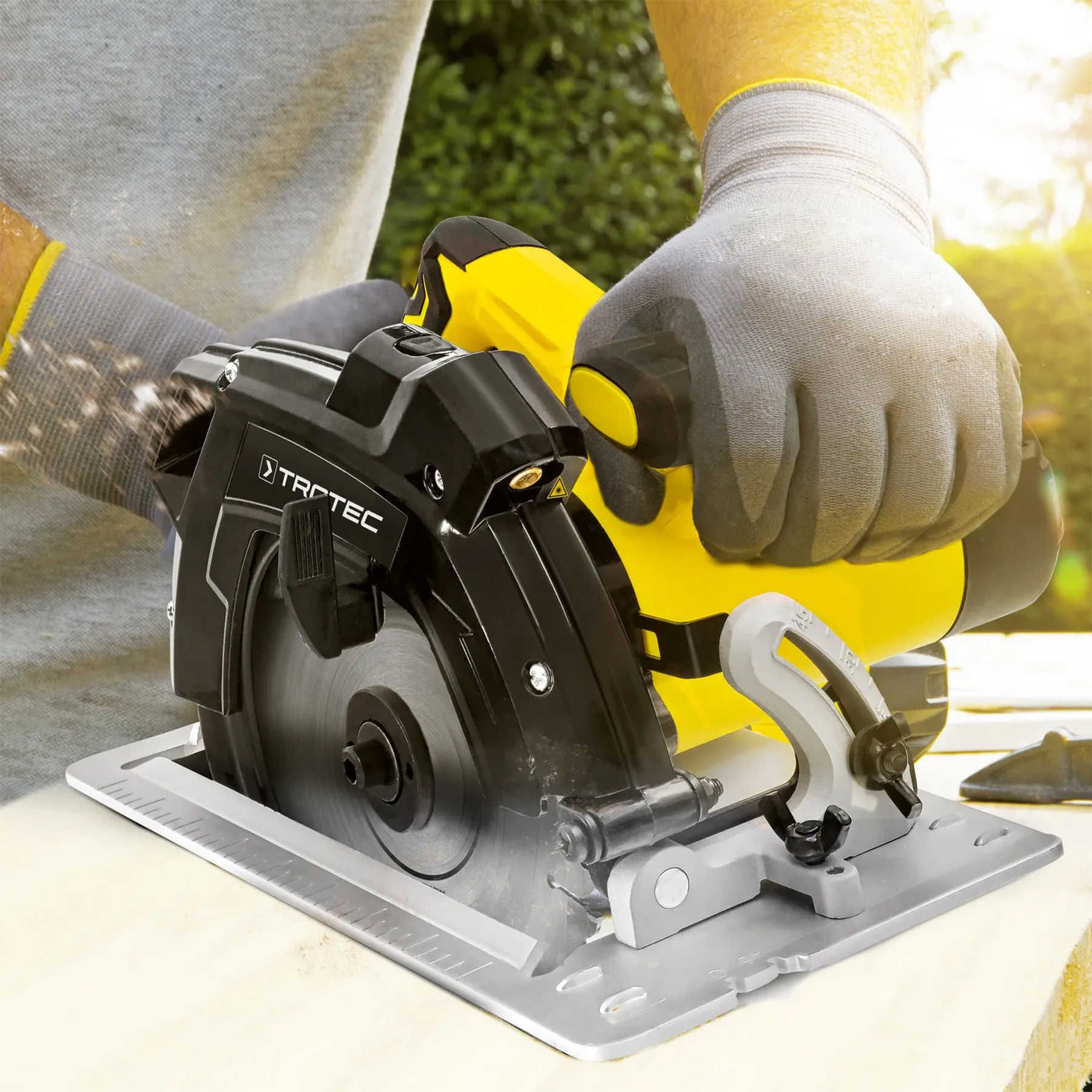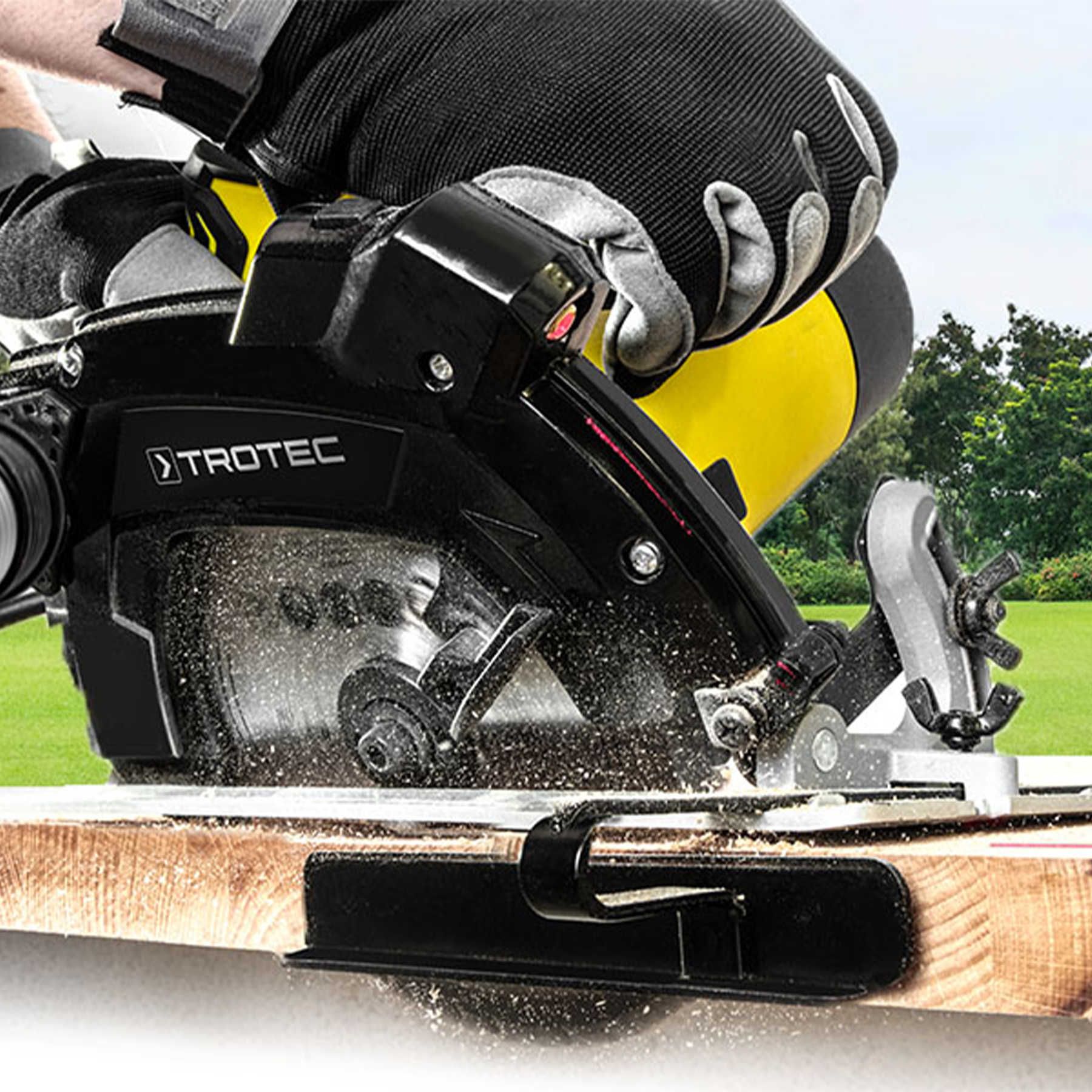 Циркулярна пила Trotec PCSS 10-1400 - це сучасний інструмент з ергономічним дизайном, оптимізований для тривалого використання без втоми і роботи з різними типами матеріалів, що поєднує ефективність і точність виконання робіт. Пила дозволяє розпилювати та відрізати масивну деревину, ДСП, МДФ, пластик, алюмінієвий профіль, листовий метал, та навіть газоблок глибиною до 65 мм перпендикулярно, або під кутом до 45°.