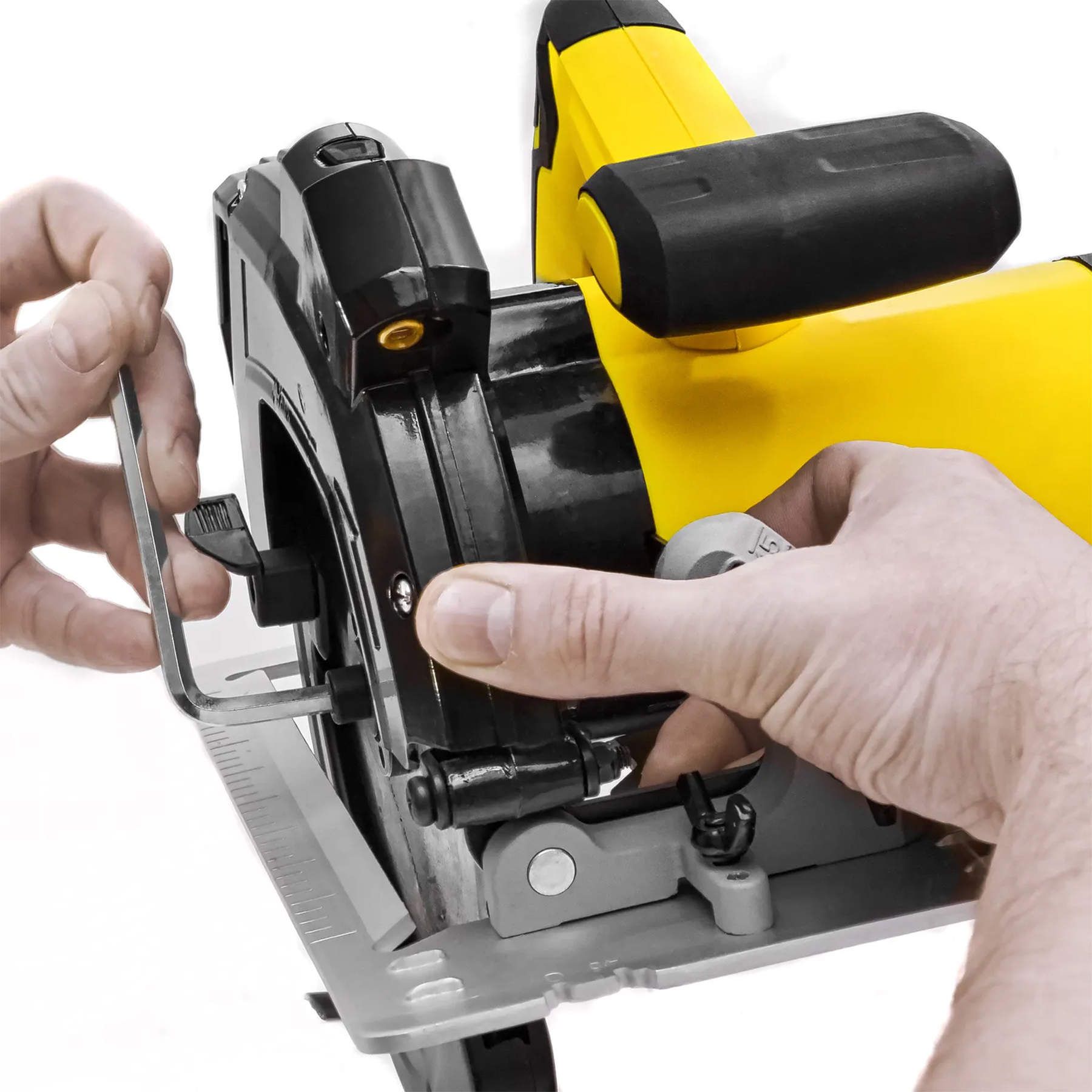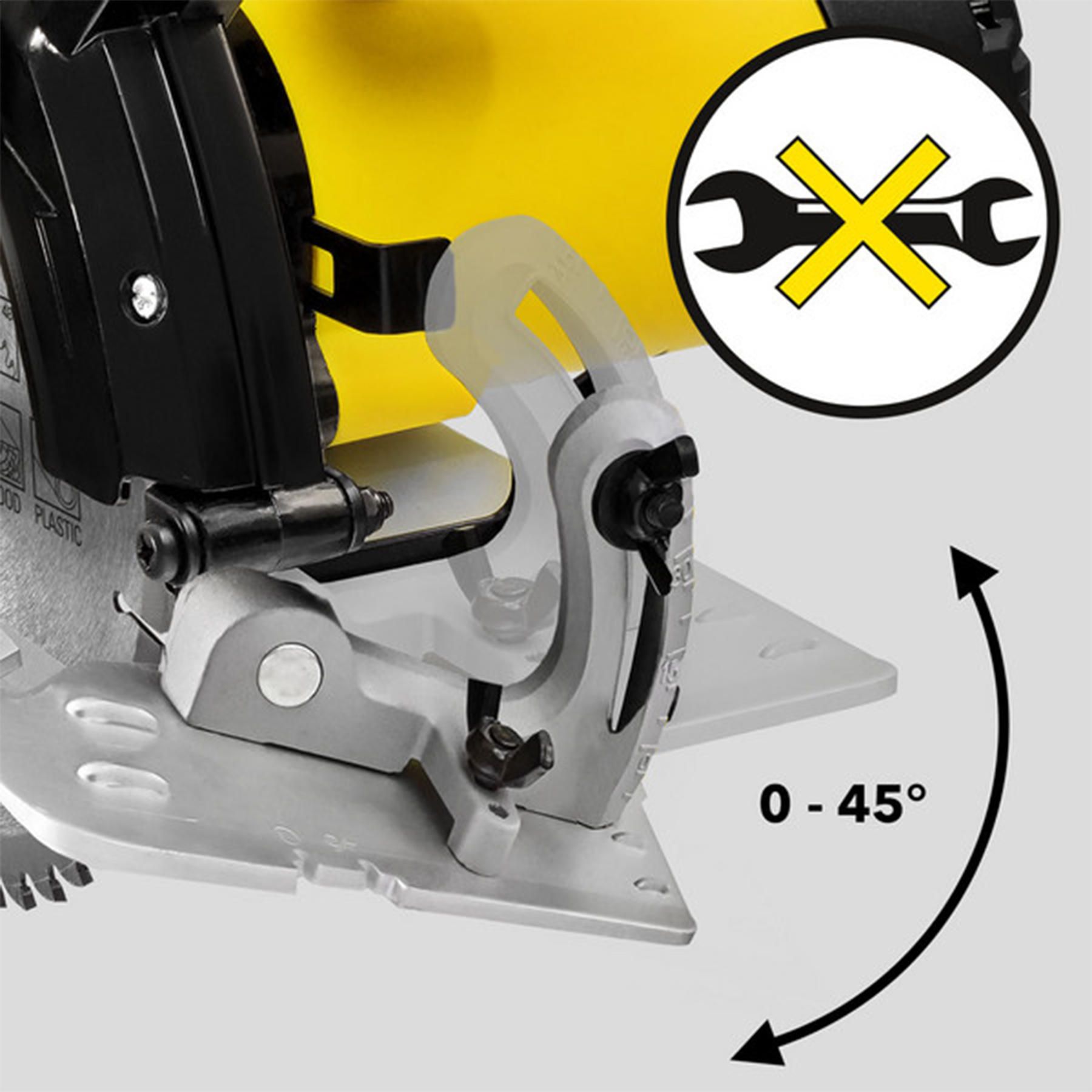 - Швидке безступінчате регулювання глибини різання й кута нахилу без додаткових інструментів.