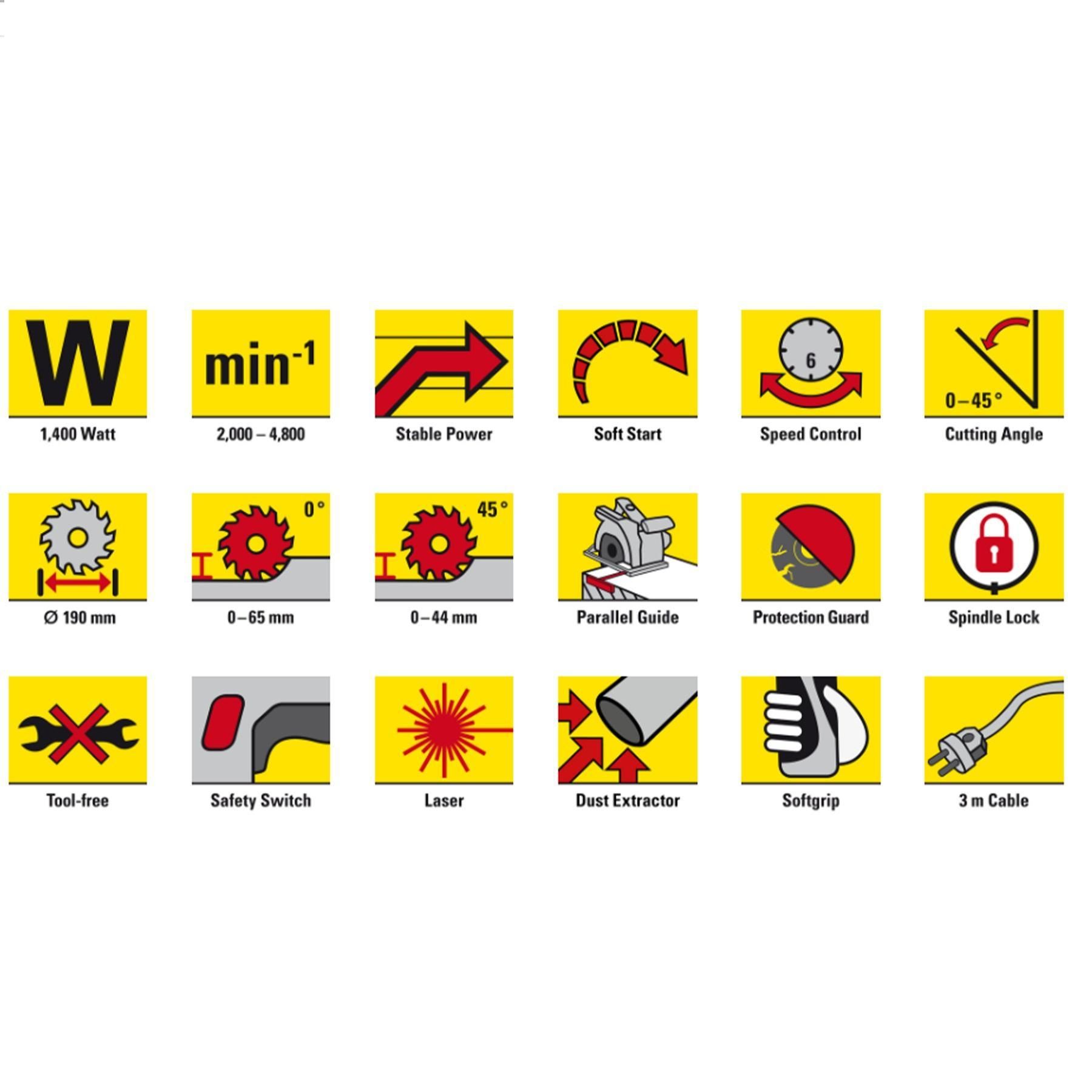 Точність і зручність роботи забезпечує вбудоване лазерний рівень, що відображає лінію різу. Лазер проектує червону лінію на заготовку, точно вказуючи напрямок різання, що полегшує ведення пилки уздовж розмітки. Відхилення від лінії різу можна відразу визначити та виправити. А для ідеального поздовжнього паралельного різу просто скористайтеся паралельною напрямною планкою, що входить у комплект. Товста лита алюмінієва підошва зі збільшеною площею контакту із заготовкою має два прорізи-маркери для точного розпилу під кутом 90° та 45°. Низький рівень вібрації та збалансований центр ваги також сприяють точності та зручності роботи.